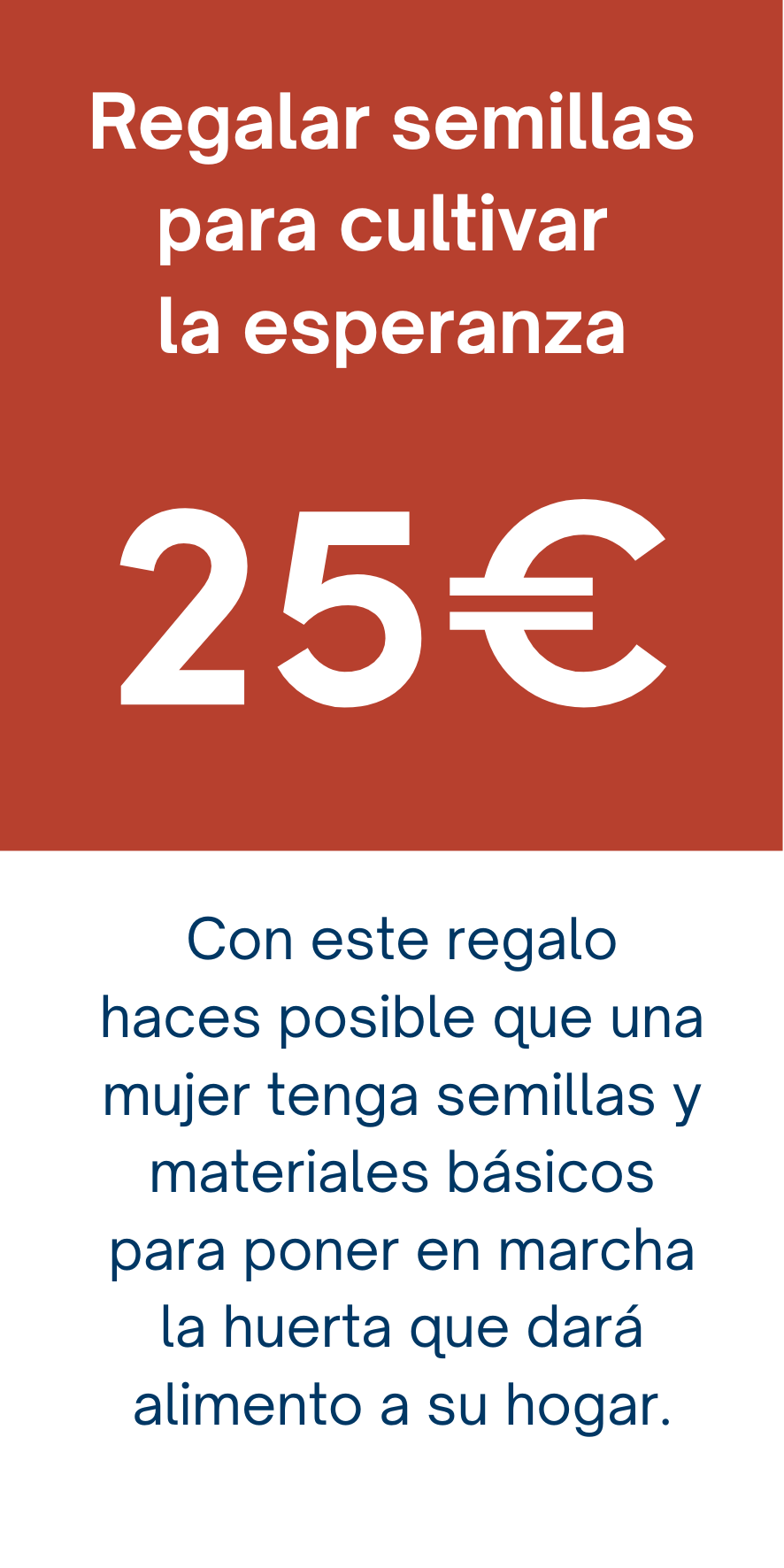 Con tu ayuda podremos: recuperar huertos, crear espacios donde conservar y transformar lo cultivado y formar a las mujeres para que puedan acceder a un trabajo digno. No son soluciones temporales: son herramientas para que puedan alimentarse hoy y asegurar su mañana.